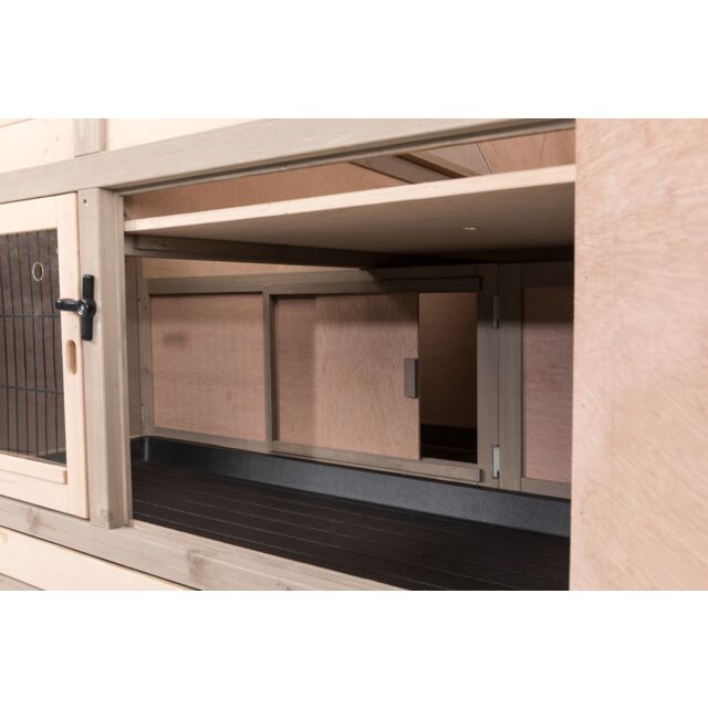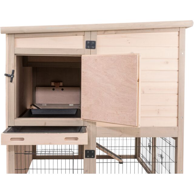 upper outer walls, tubs and roof with styrofoam insulation also suitable for raising young animals due to the small spacing between the bars (2 cm). Retreat with sliding door Removable plastic...