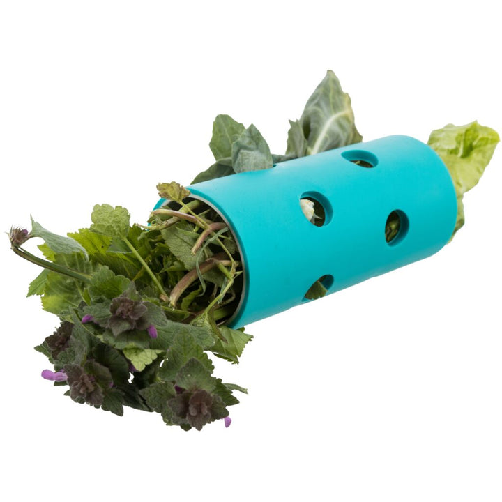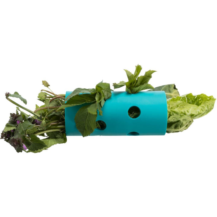for filling with hay and grass, fruit and vegetables or other treats species-appropriate employment and mental challenge can also be used for daily feeding Plastic core with smooth-running rubber coating Plastic/TPR...