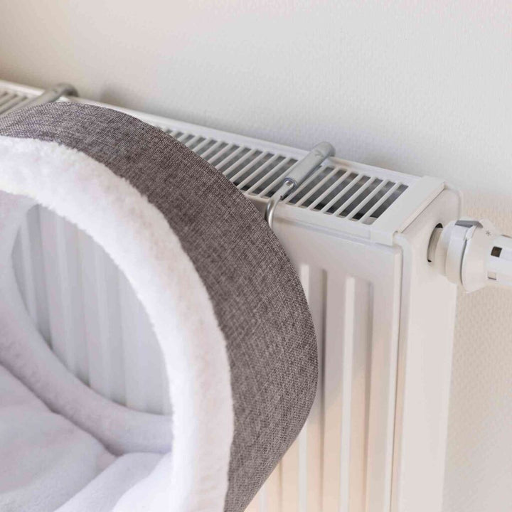 Short-hair plush cover (polyester) Reversible pillow with polyester fleece filling with adjustable bracket (9-11 cm) for all common radiators