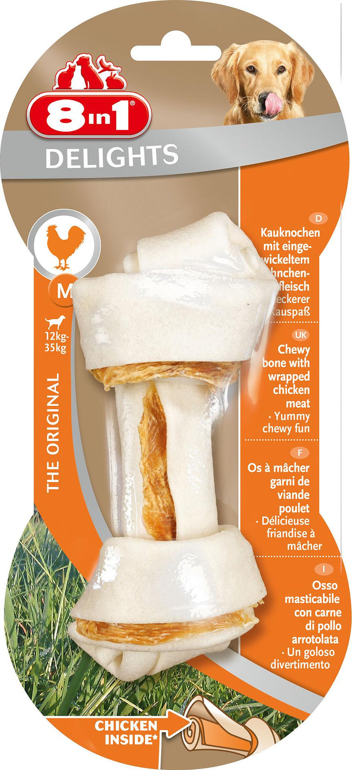 Chewing bones with chicken - the original. Delicious chicken wrapped in premium rawhide that is firm to the bite. The unique combination of chewing bone and reward. Only 2% fat, cares for the teeth, reduces plaque and thus prevents the formation of tartar. Satisfies the dog's natural chewing instinct, lasting chewing fun without leftovers. Without artificial colors and flavor enhancers.