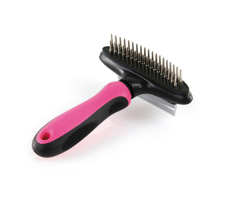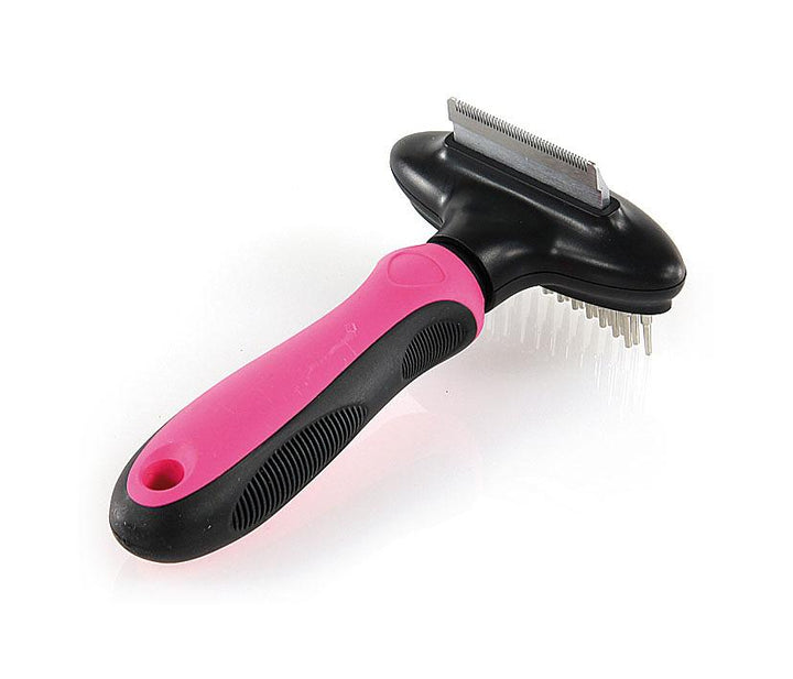 The fur detangler has rounded teeth that care for the fur in a very gentle and gentle way. The trimmer allows you to grab and remove the undercoat. It doesn't cut, it grabs and pulls the loose hair and undercoat out of the coat without damaging the top coat or removing healthy hair. Incl. 30° flex joint head for gentle care.