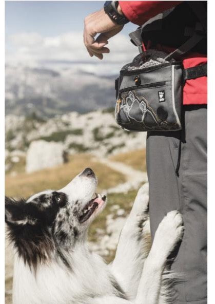 Adjustable waist belt and belt clip Easy and quick to open removable pocket for sticky rewards Reflective print Zipper and front pocket for poop bags Volume: 4dl The Hurrta Bounty Bag...