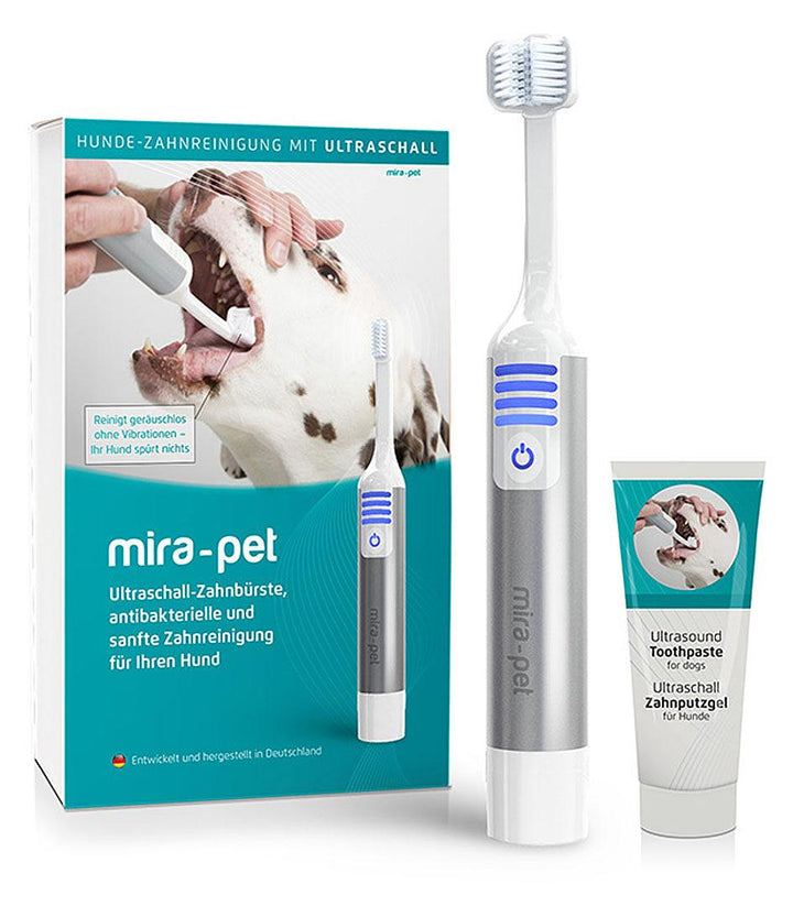 Mira-pet Ultrasonic Toothbrush Cleany Teeth Starter Kit 80% of all dogs between the ages of 2 and 3 years suffer from tooth or gum disease. The Mira-pet Ultrasonic Toothbrush Cleany Teeth...