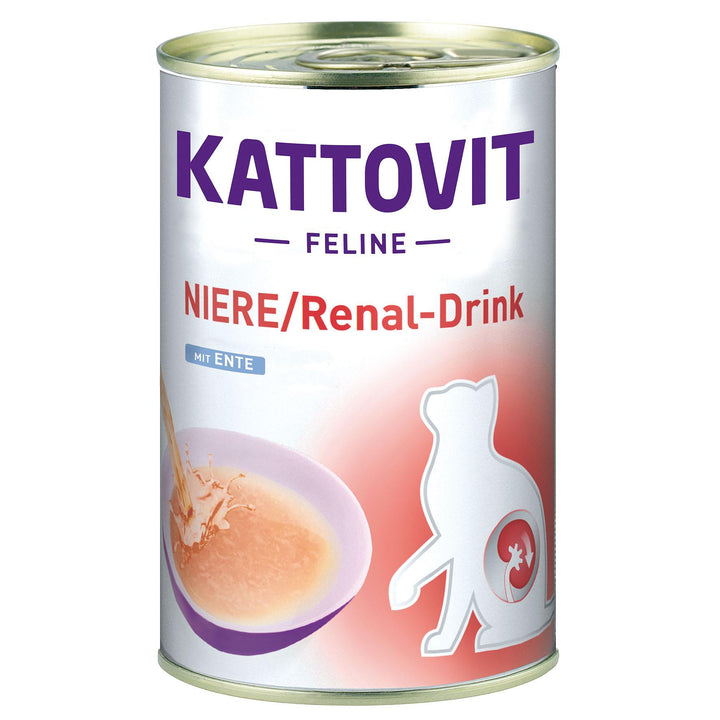 Kattovit kidney drink duck, 135ml Low-protein cat drink to support kidney function. Drink to increase the daily drinking amount for adult cats that suffer from impaired kidney function. For cats with...