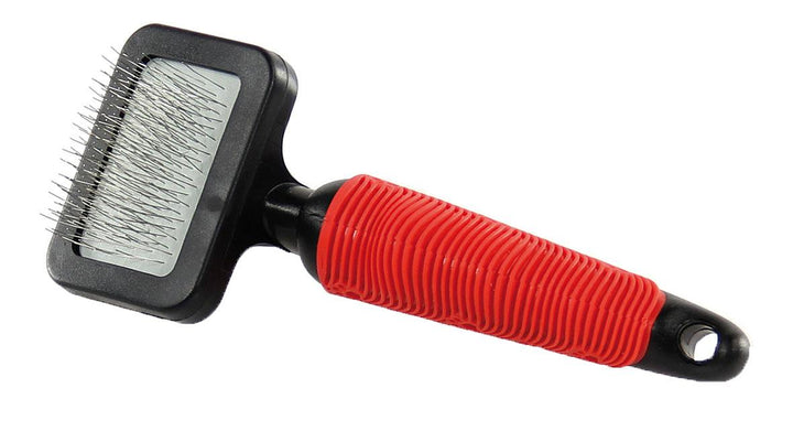 The practical cleaning comb for easy cleaning is included. The soft slicker brush is available in 3 sizes: small 16cm, medium 18cm and large 20cm.